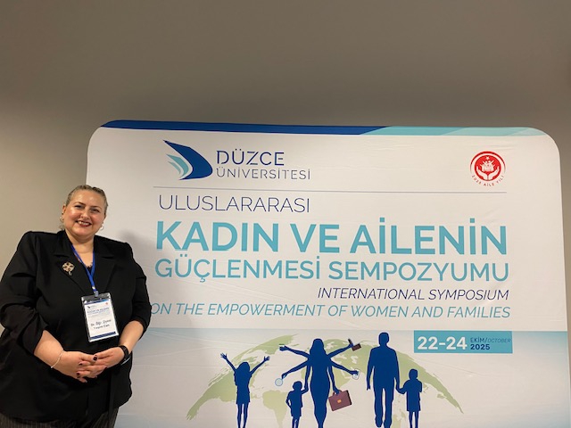 22-24 Ekim 2025 tarihleri arasında "Uluslararası Kadın ve Ailenin Güçlenmesi Sempozyumu", Düzce Üniversitesi Kadın Çalışmaları Uygulama ve Araştırma Merkezi ile Yönetim ve Liderlik Uygulama ve Araştırma Merkezlerinin ev sahipliğinde gerçekleştirildi. Sempozyumda; kadın ve aile ile ilgili disiplinlerarası farklı konularda yaklaşık 140 adet bildiri sunulurken, merkez Müdür Yardımcımız Dr. Öğr. Üyesi Yeşim CAN ise "İşgücü Piyasasında Genç Kadınlar: Türkiye ve Avrupa Birliği Perspektifinden Bakış" başlıklı bildirisini sundu. Ayrıca Müdür Yardımcımız uluslararası beş ayrı bildirinin sunulduğu "Kadının İzinde: Tarih, Edebiyat ve Kültürel Bellekte Temsil" oturumunda oturum başkanlığı da yaparak kültürel ve bilimsel etkileşime katkı sağladı.