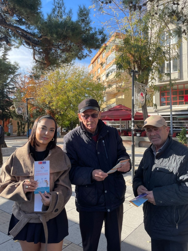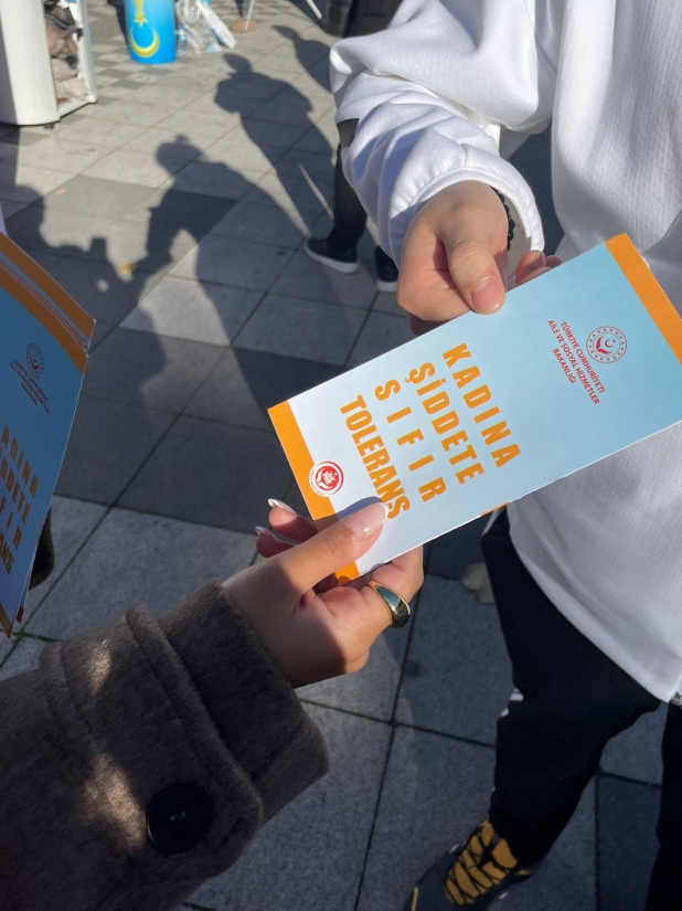 25 Kasım Kadına Yönelik Şiddete Karşı Uluslararası Mücadele Günü kapsamında, 25 Kasım 2025 Salı günü saat 14.00’te, Kırklareli Aile ve Sosyal Hizmetler İl Müdürlüğü’ne bağlı ŞÖNİM ve Sosyal Hizmet Merkezi Müdürlüğü, Kırklareli İl Emniyet Müdürlüğü ve Kırklareli İl Jandarma Komutanlığı tarafından İstasyon Caddesi’nde farkındalık standı kuruldu. Kurulan standa Merkezimiz Kadın ve Aile Çalışmaları Kulübü öğrencileriyle birlikte destek verdi. Broşür dağıtımında görev alan öğrencilerimiz, vatandaşlarla birebir görüşmeler yaparak farkındalık oluşturulmasına katkı sağladı. Etkinlikte, kadına yönelik şiddetle mücadeleye ilişkin başvuru mekanizmaları, ALO 183 ve ALO 112 ihbar hatları, KADES uygulaması ile koruyucu ve önleyici hizmetler hakkında bilgilendirmelerde bulunuldu.