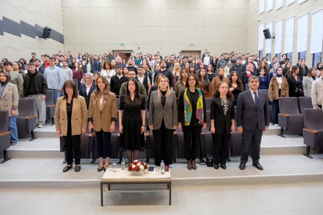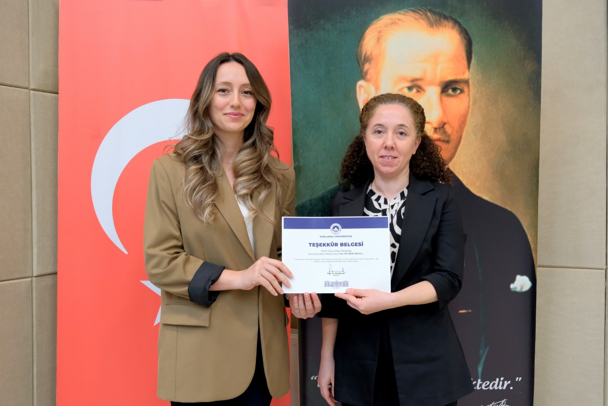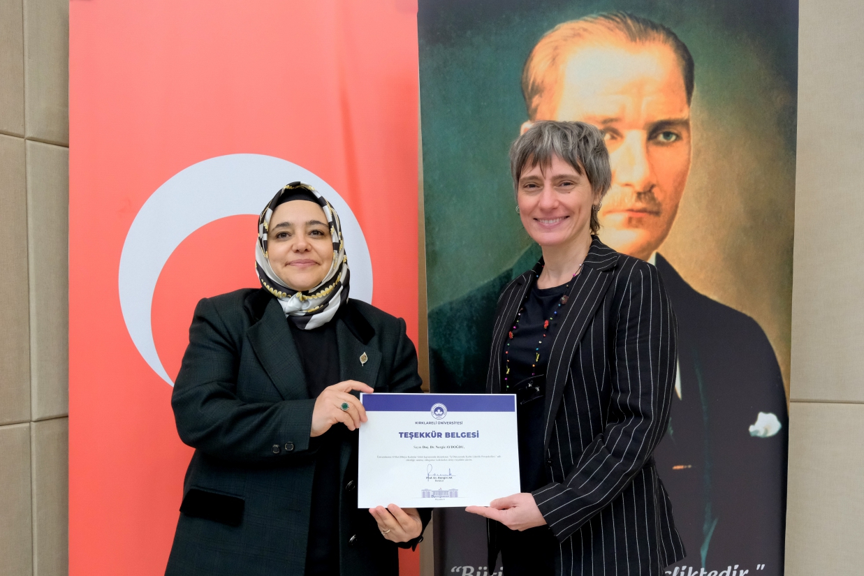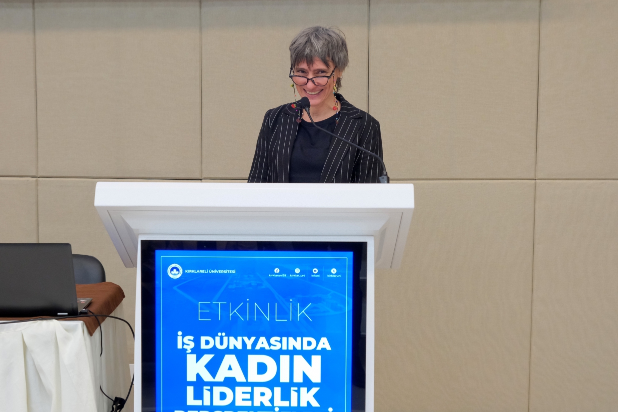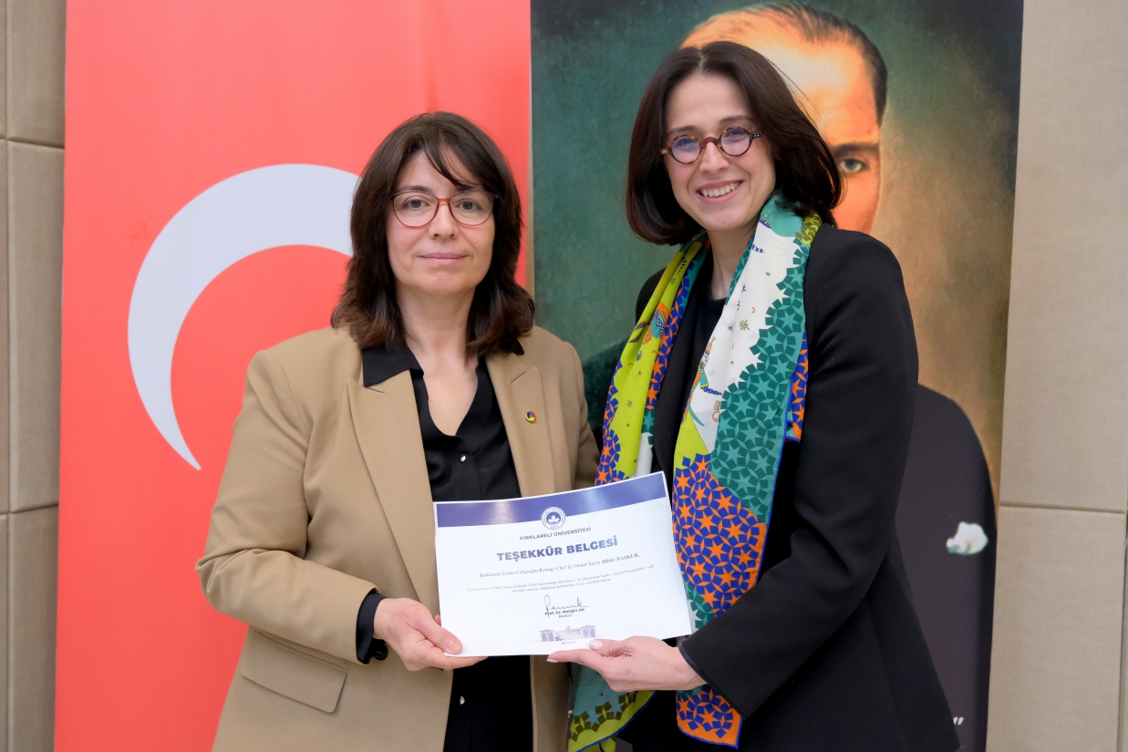 Merkezimiz tarafından 8 Mart Dünya Emekçi Kadınlar Günü kapsamında düzenlenen "İş Dünyasında Kadın Liderlik Perspektifleri" Paneli, 12 Mart 2026 Perşembe günü Rektörümüz Prof. Dr. Rengin Ak, Rektör Yardımcılarımız Prof. Dr. Eylem Özkaya Lassalle ve Prof. Dr. Meryem Çamur Demir ile Uluslararası İlişkiler Koordinatörü Prof. Dr. Berna Ak Bingül'ün katılımıyla gerçekleştirildi. Merkez Müdürü Dr. Öğr. Üyesi Sibel Tokatlıoğlu'nun açılış konuşması ve Rektörümüz Prof. Dr. Rengin Ak'ın konuşmasıyla başlayan, Merkez Yönetim Kurulu Üyesi ve Toplumla İlişkiler Koordinatörü Doç. Dr. Nergiz Aydoğdu'nun moderatörlüğünü üstlendiği panele; Kırklareli Gusto Celepoğlu Konağı Şefi ve Sahibi Jülide Başkur, Türkiye Petrolleri Anonim Ortaklığı Trakya Bölge Müdürlüğü İnsan Kaynakları Müdürü Nur Zeybek Boylu ve Zorluteks Tekstil Dış Ticaret Operasyon Müdürü Nuray Karabıyık konuşmacı olarak katıldı. Konuşmacılar, iş dünyasındaki kariyer yolculuklarını ve liderlik deneyimlerini paylaştı; öğrencilerimize kariyer ve yaşam tercihlerine ilişkin birikimlerinden süzülen önerilerde bulundu. Panel, teşekkür belgelerinin takdim edilmesiyle son buldu.